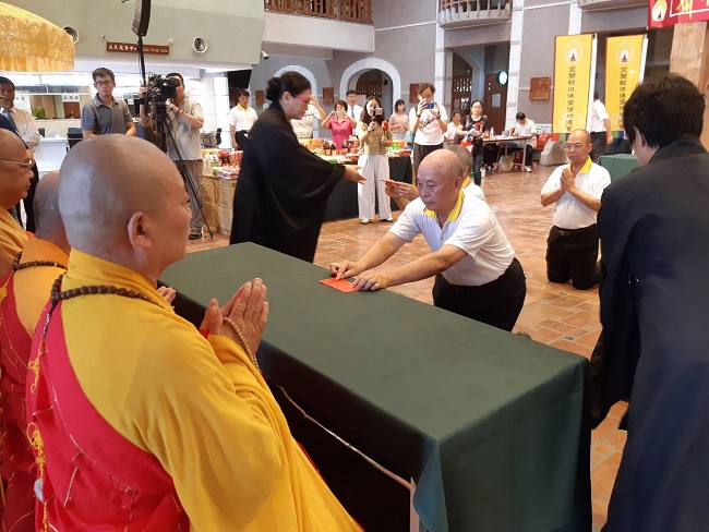 為這項全民供佛齋僧暨孝親報恩法會,18日上午先行舉行記者會,邀請地方各界有縣府民政局長游宏隆、縣議員黃定和、天主教高國卿神父、宜蘭縣聯合勸募基金會董事長陳耀德及宜蘭市公所、羅東鎮公所等代表多人到場觀禮。