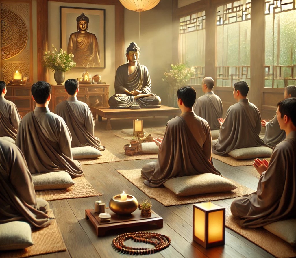 大聲念或微聲念,都要一字一句,清清楚楚。最好耳根不要分聽外界的聲音。在念佛中間,縱有一個雜念,要立即自淨其意,要以念佛之念來遮斷一切雜念,專心注意在返聞內聽上,雜念自然中止不生。念到六根不受外界影響,念念是佛,這樣也就是合于觀世音菩薩“返聞聞自性”的法門,同時也可進入大勢至菩薩“淨念相繼”的念佛境界。